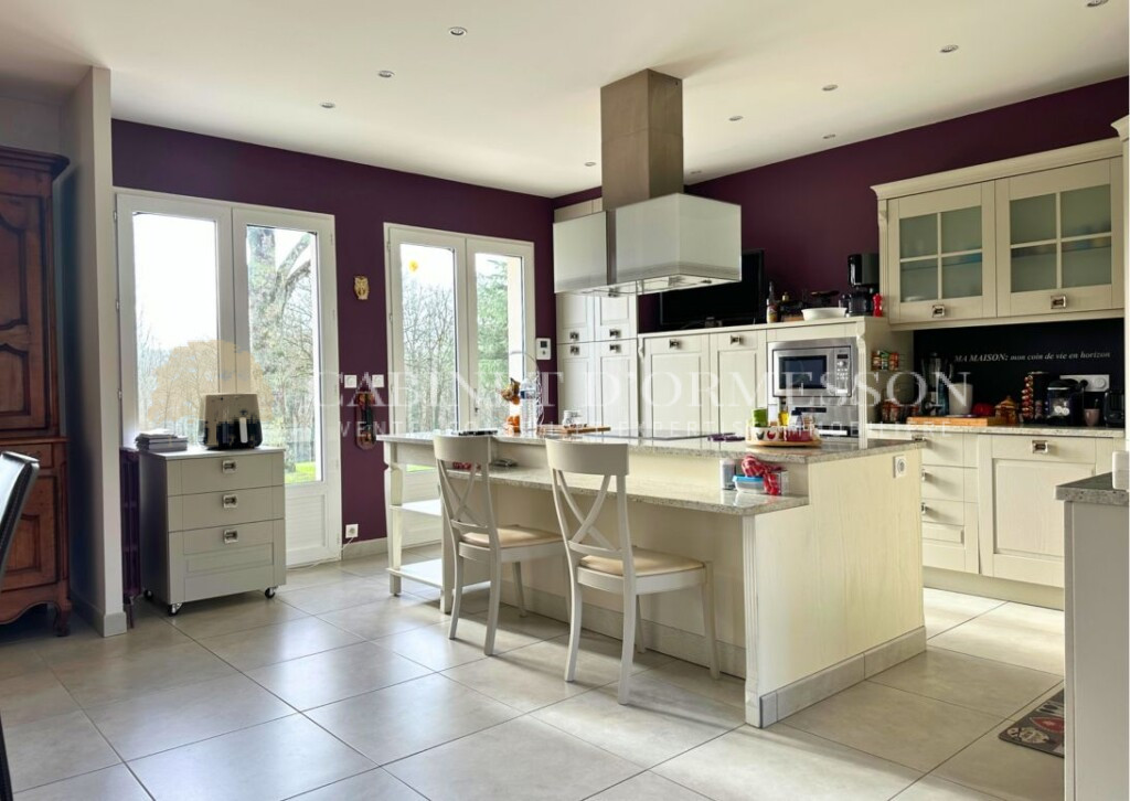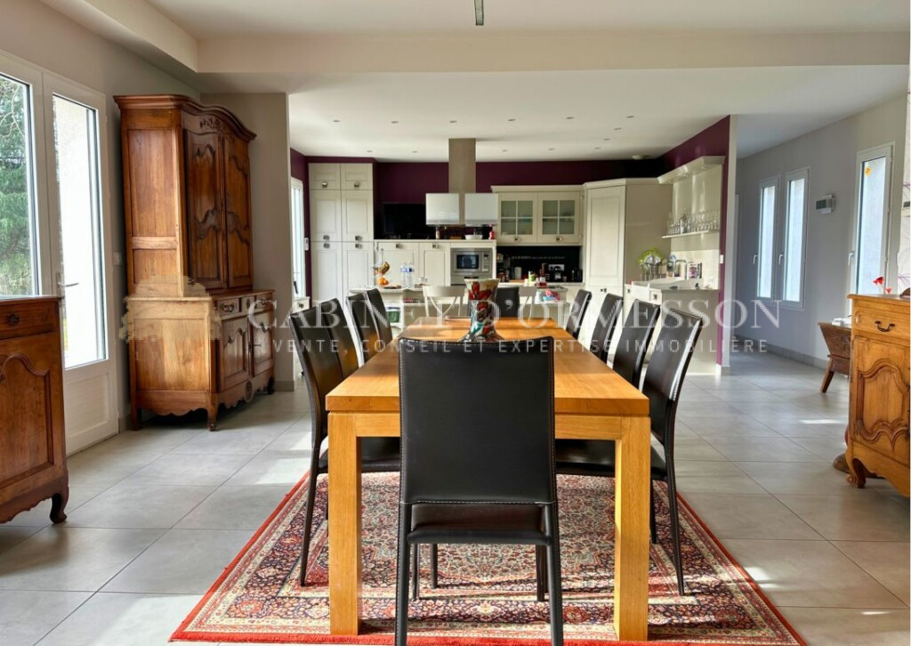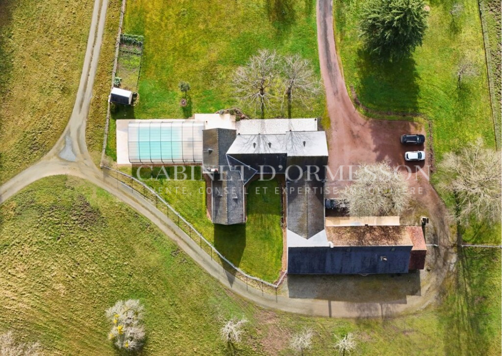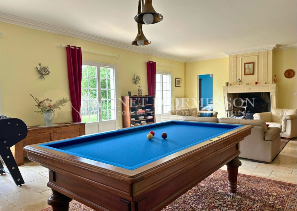 – Une maison principale de plain pied, d’environ 200m² et reconstruite dans les années 1980, comprenant 3 chambres et salles de bains, un grand espace cuisine ouverte sur une salle à manger, salon avec cheminée et un accès à une piscine couverte 9x6m. Toitures en très bon état, double vitrage, chaudière fioul.